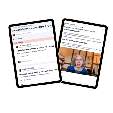 A private space for women who are done pretending this is fine. Real conversations, real wins, real support. I'm active in the community five days a week. Questions get answered quickly — not just at the next scheduled call.